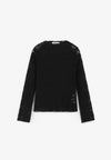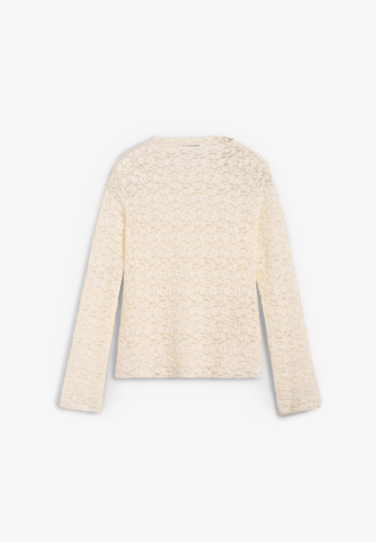 Camiseta de encaje Grace & Mila confeccionada en 60% poliamida, 30% algodón y 10% elastano. Presenta un corte ajustado, tejido transparente y escote alto con acabados ondulados.