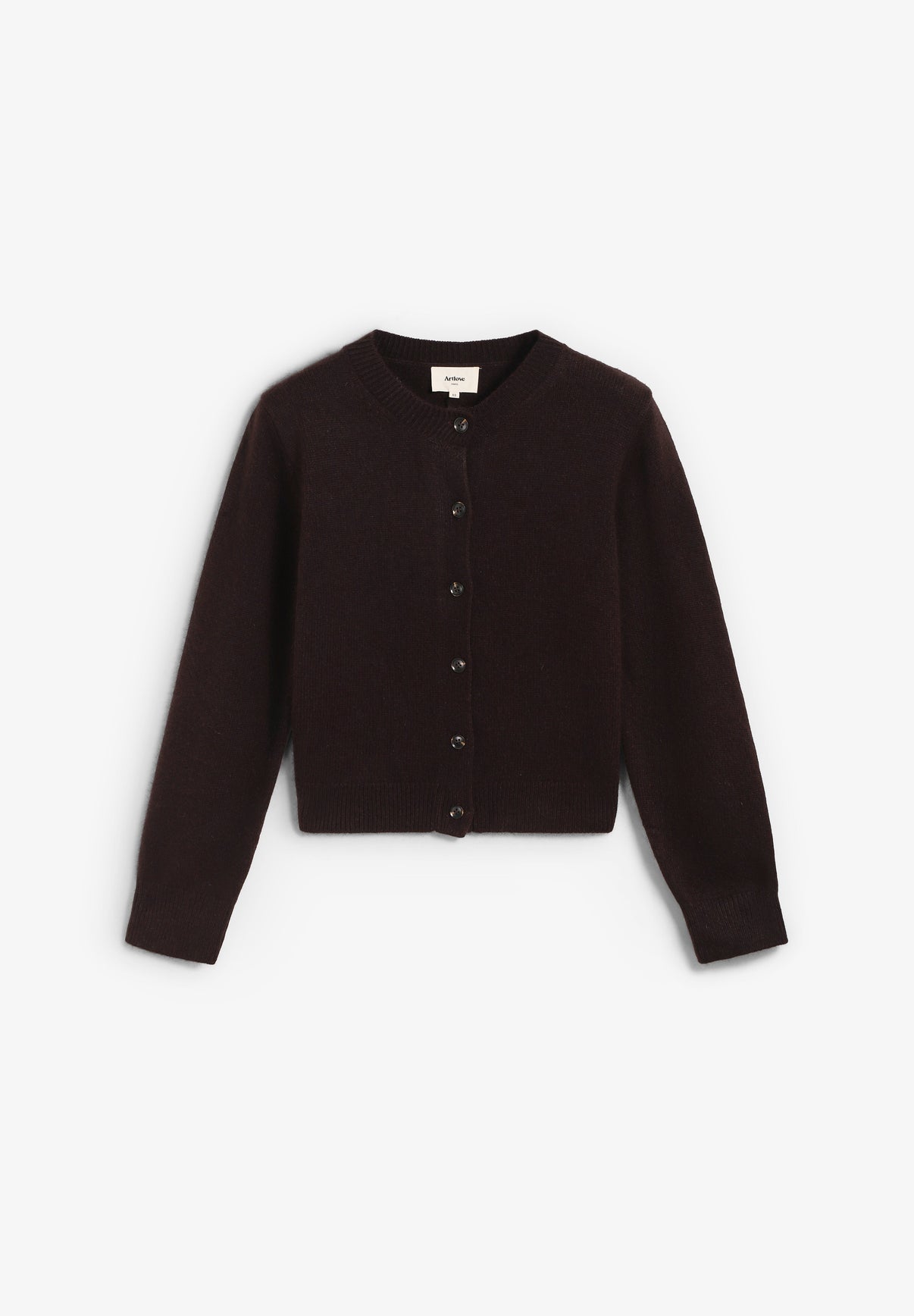 Cárdigan Artlove confeccionado en 45% poliamida, 30% viscosa, 25% alpaca y 5% lana. Presenta un corte recto y ajustado, con cuello redondo clásico y botones a tono.