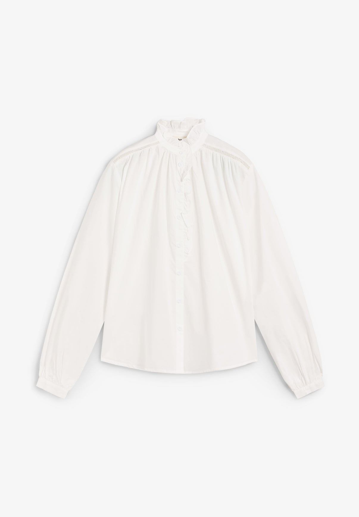 Camisa Artlove confeccionada en 100% algodón, cuello con volantes y tapeta fruncida.