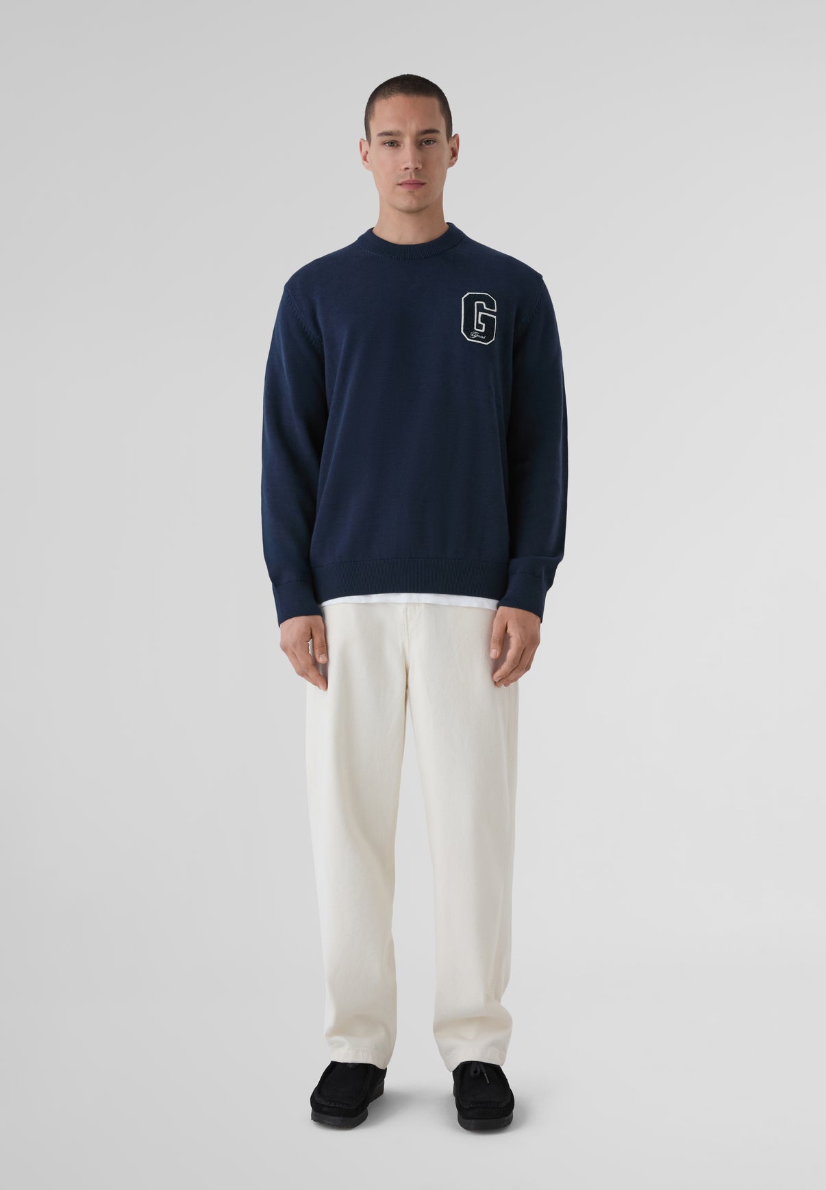 Jersey Gant confeccionado en 100% algodón y corte holgado. Cuenta con una insignia deportiva de la "G" aplicada en el pecho en felpa y fieltro, cuello redondo clásico y terminaciones acanaladas en cuello, bajo y puños.
