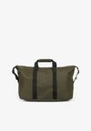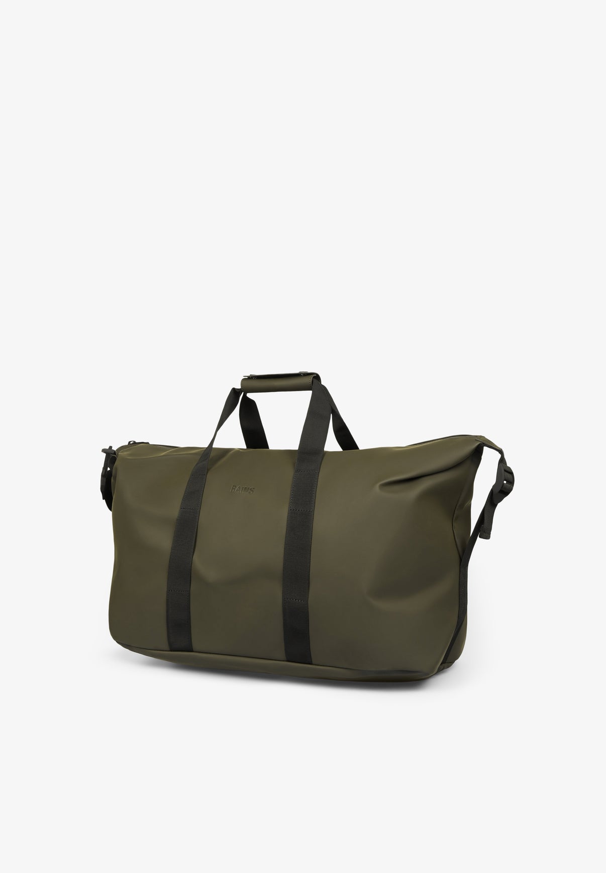 Bolsa Rains confeccionada en tejido 100% poliéster. Presenta un acabado impermeable, una cremallera integral con revestimiento, correas de ajuste laterales y asas de transporte tipo cincha, con una cómoda pieza envolvente de agarre, junto con anillas para enganchar la correa desmontable para el hombro que viene incluida. Detalle logo marca grabado.