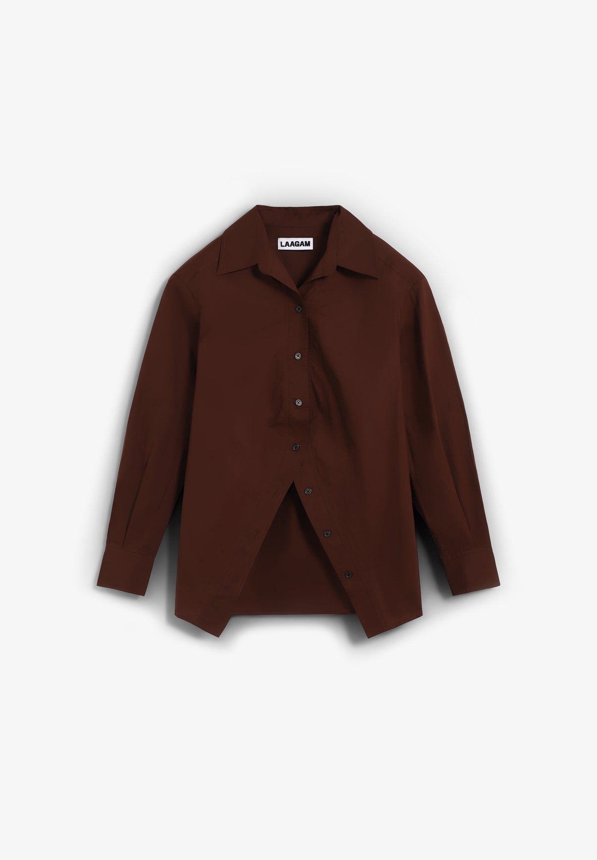 Camisa Laagam multiposición confeccionada en algodón 100% y corte regular. Cuenta con cuello de solapa, puños franceses y hombros caídos. Cierre asimétrico con botones.