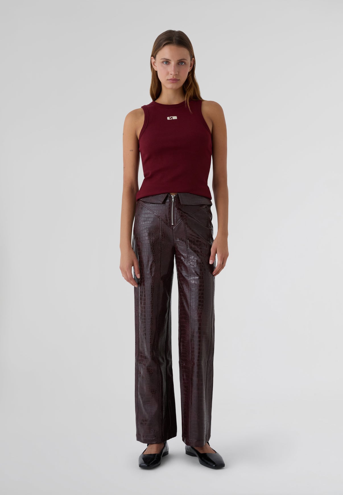 Top Laagam confeccionado en tejido 100% algodón ligero acanalado. Diseño ajustado, sin mangas, con escote redondo y logo bordado en la parte delantera.