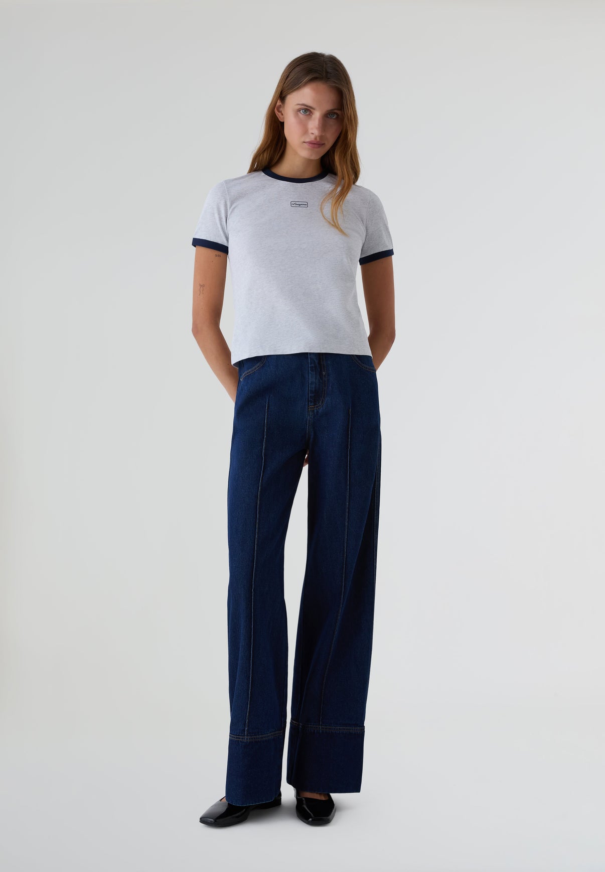 Camiseta Laagam confeccionada en 100% algodón. Presenta cuello redondo en contraste y mangas acanaladas. Escote redondo y detalle gráfico del logo en contraste bajo el cuello.