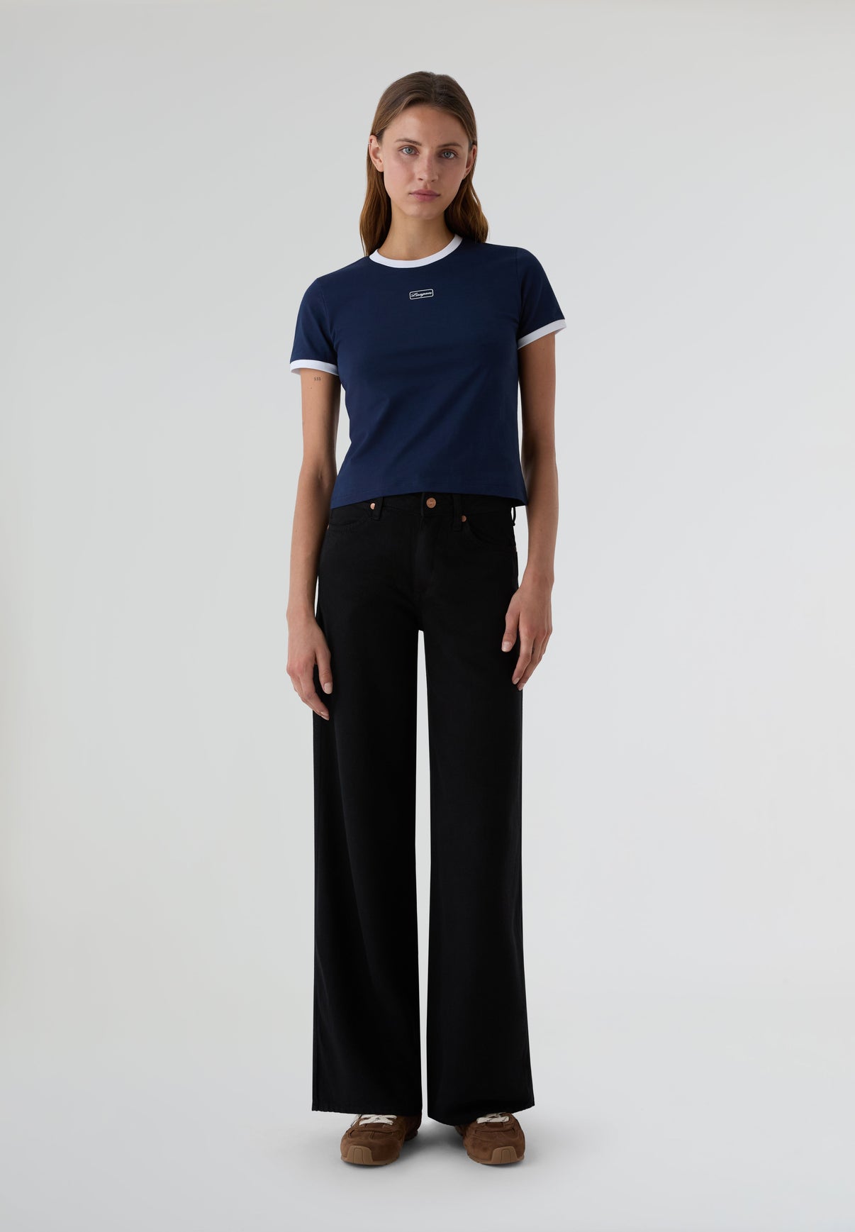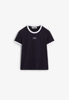 Camiseta Laagam confeccionada en 100% algodón. Presenta cuello redondo en contraste y mangas acanaladas. Escote redondo y detalle gráfico del logo en contraste bajo el cuello.