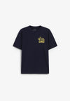Camiseta Edwin confeccionada en 100% algodón. Presenta un corte holgado, estampados gráficos en el pecho y la espalda, y cuello acanalado para mayor durabilidad y estructura.