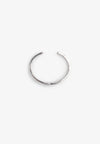 Pulsera Twojeys confeccionada en plata con el logotipo en la sección transversal. Se desliza desde un lado y se ajusta holgadamente a la muñeca.