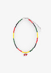 Collar Twojeys elaborado con cuentas de vidrio tintado, con el colgante del logotipo Icon bañado en plata y esmalte rojo.