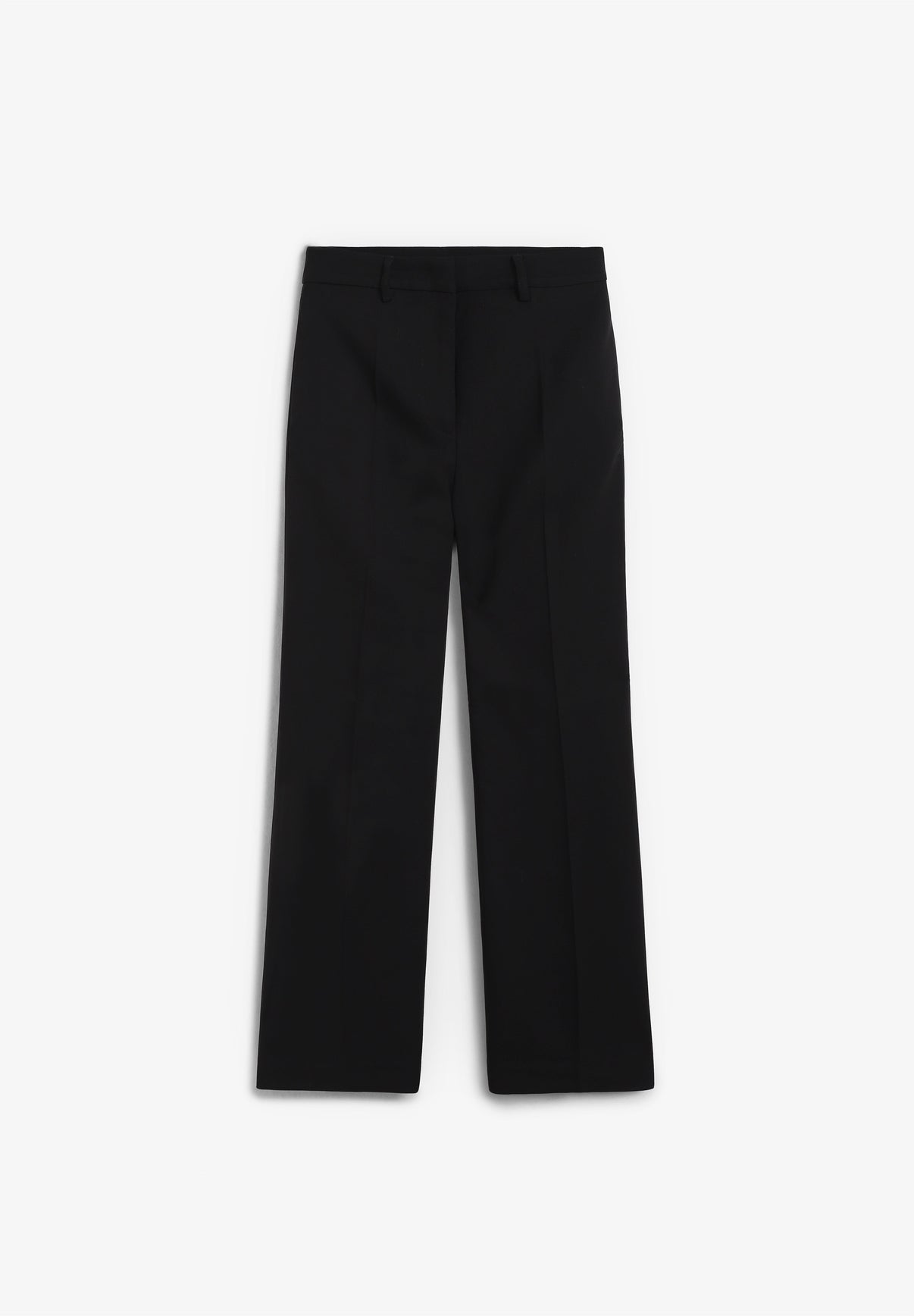 Pantalón Sessun confeccionado en mezcla de materiales (64% poliéster, 34% algodón y 2% elastano), de corte recto, flexible y ligero. Presenta una cintura elástica, cierre de botón, gancho y cremallera oculta y bolsillos en las costuras laterales. Detalle de bolsillos ribeteados en la parte trasera y pliegues a lo largo de la pernera.