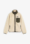 Chaqueta Patagonia estilo forro polar de longitud a la cadera con exterior de vellón 100 % poliéster (85 % reciclado) y respaldo cortavientos. Cremallera frontal completa con solapa interior para proteger del frío. Mangas Y-Joint que aportan libertad de movimiento en hombros y brazos. Incluye bolsillo vertical en el pecho y dos bolsillos calientamanos con cremallera. Certificado Fair Trade Certified™.