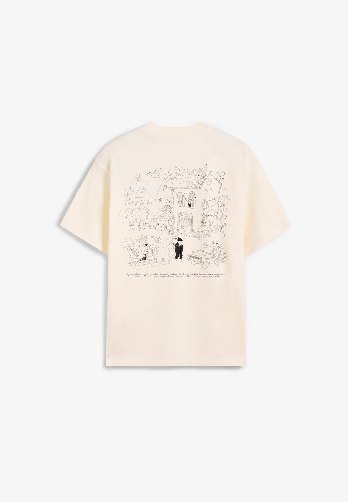 Camiseta Edmmond Studios confeccionada en 100% algodón orgánico y corte relajado. Presenta una ilustración especial titulada "Scene Del Crimen" que representa una escena del crimen con un toque narrativo y visual. En el pecho, se encuentra en logotipo de la marca con un acabado efecto bolígrafo.