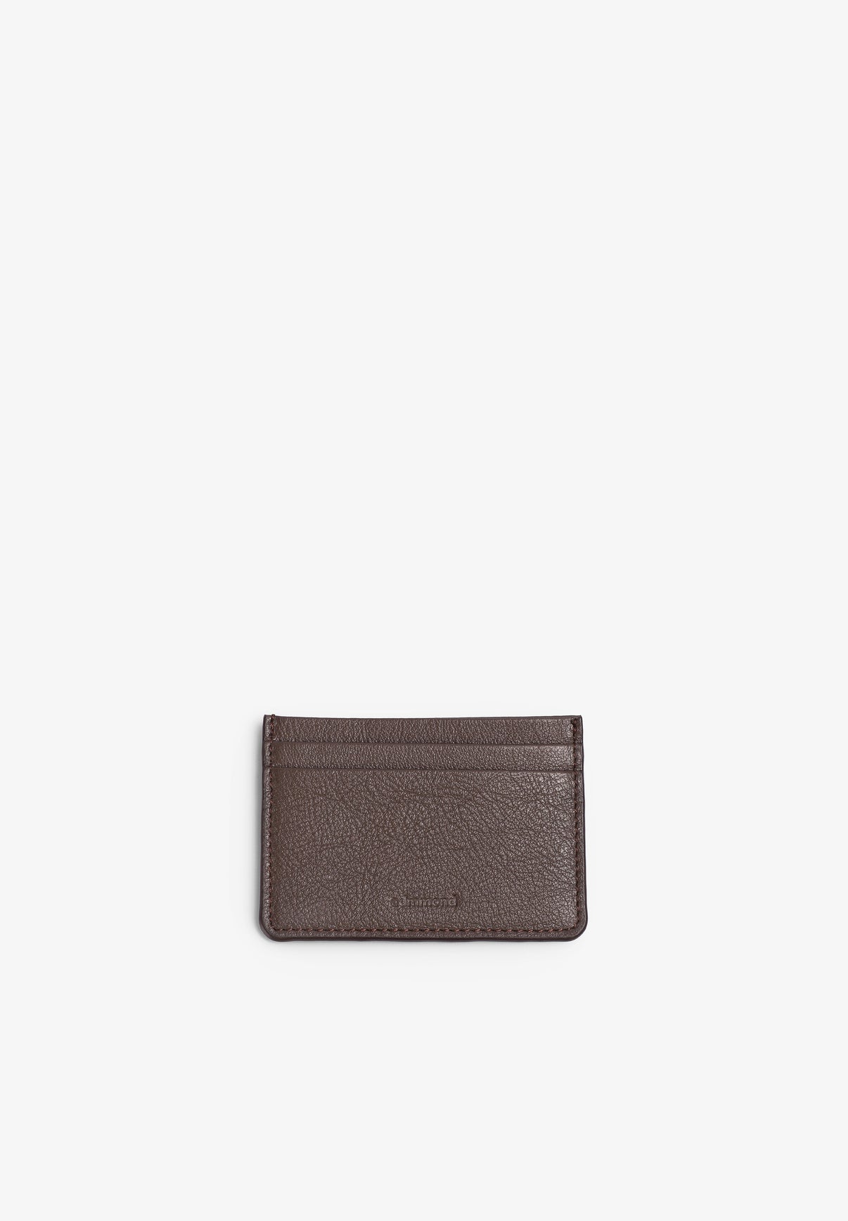 Tarjetero Edmmond Studios fabricado en piel 100%, color gris oscuro y con la firma de Edmmond en la parte frontal.