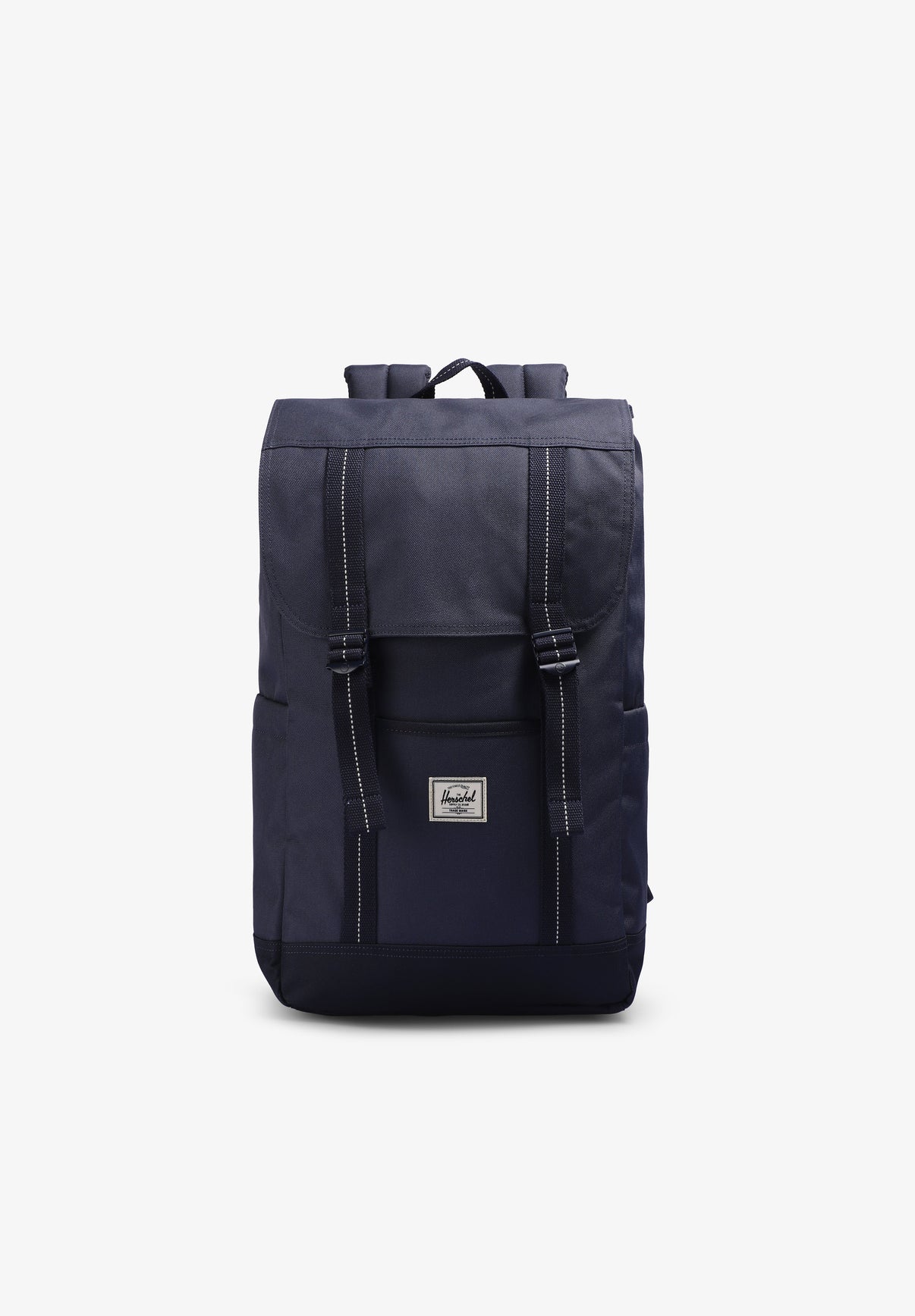 Mochila Herschel confeccionada en 100% poliéster reciclado. Cuenta con un forro de rayas tonales, funda flotante y acolchada para un portátil de 15"/16", cierre de cordón en forma de U, correas ajustables y acolchadas con EVA, correas con cierre magnético y hebillas metálicas, bolsillos dobles para botellas de aguay funda de almacenamiento frontal. Detalle de etiquetas bordadas.