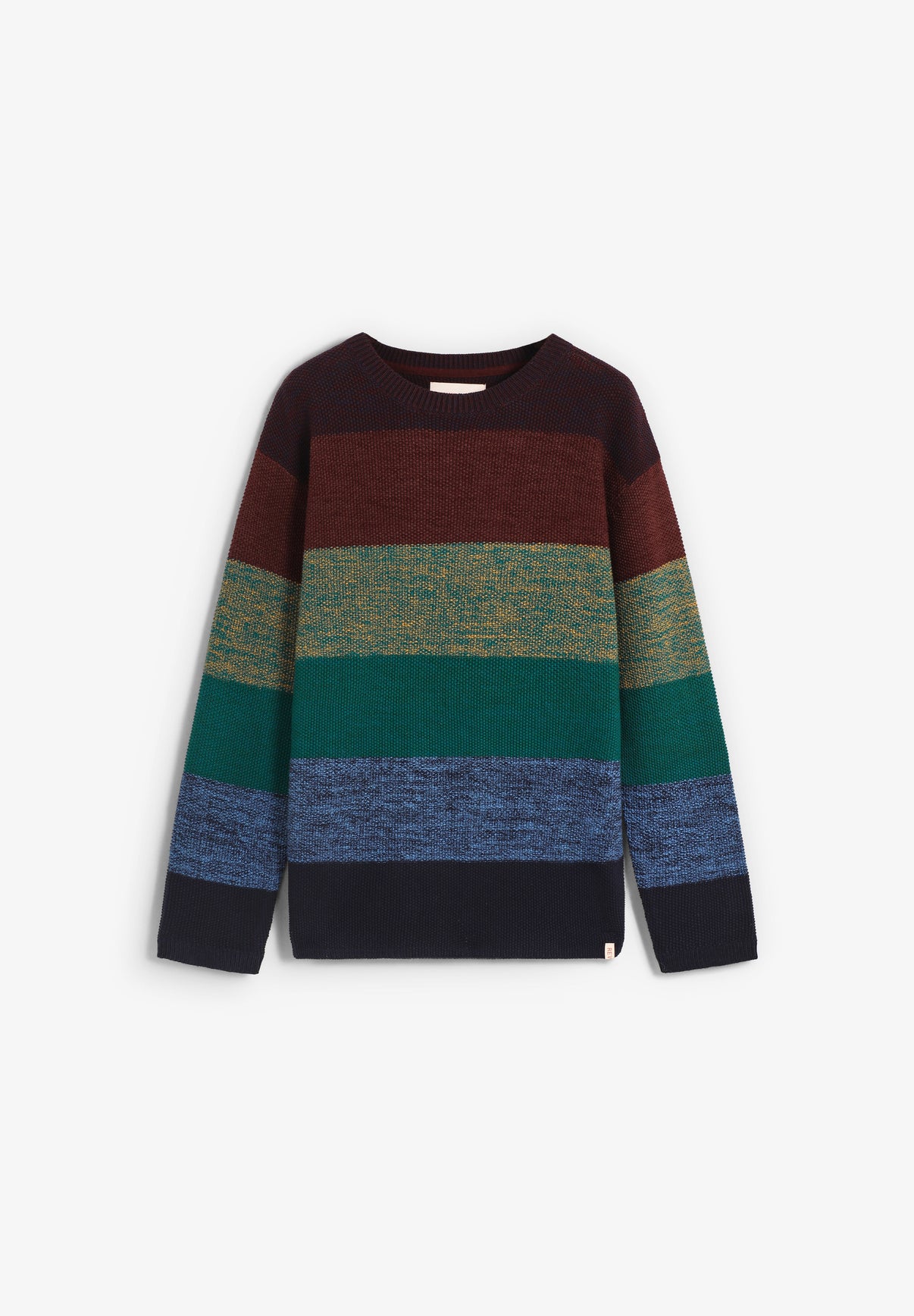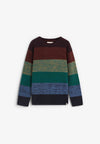 Jersey Revolution confeccionado en 100% algodón orgánico. Presenta un estampado de rayas anchas multicolor en vibrantes tonos de temporada, corte holgado y bordes acanalados.