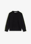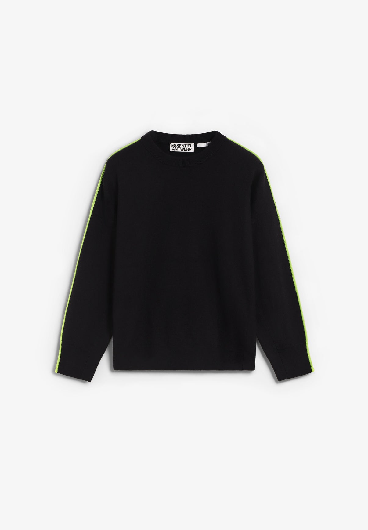 Jersey Essentiel confeccionado en mezcla de tejidos: 48% lana, 48% acrílico, 3% poliamida y 1% elastano. Presenta un corte holgado realzado por sus mangas murciélago y está diseñado para resaltar la figura gracias a su cintura ceñida con acabado acanalado.