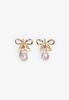 Pendientes Alhaja Cult Store inspirados en la joyería de la antigua Roma, combinando la ligereza de una filigrana en forma de lazo con la pureza atemporal de una perla barroca. El diseño permite extraer la perla y llevar solamente el lazo. Pendientes bañados en oro de 18k. Peso pendiente: 6.90 gramos.