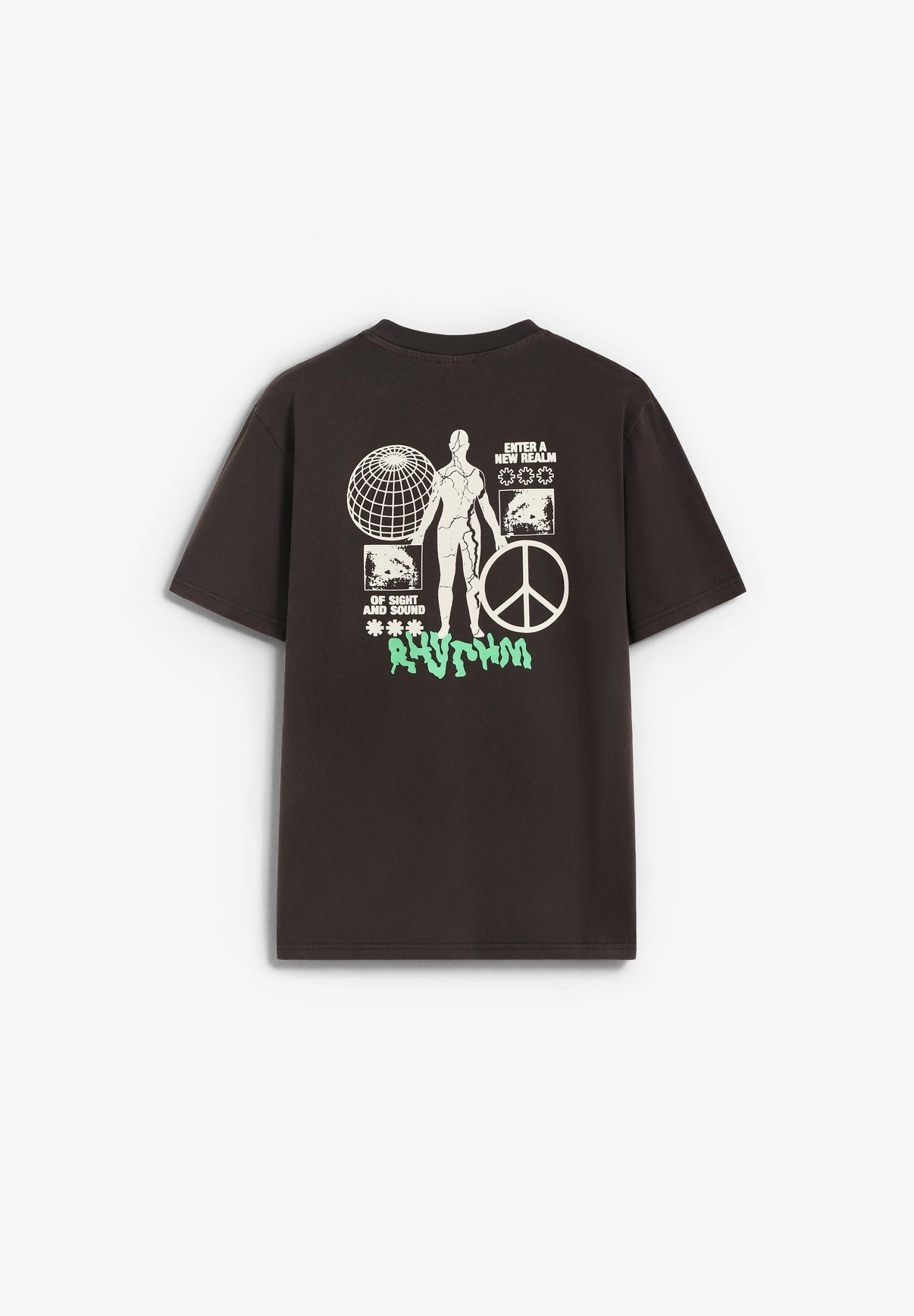 Camiseta Rhythm confeccionada en 100% algodón y corte holgado. Cuenta con cuello clásico, mangas cortas y dibujo serigrafiado en pecho y espalda.