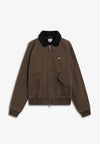 Chaqueta Obey confeccionada en 100% algodón y ajuste regular. Presenta cuello de pana, fuelle trasero, bolsillos de parche con cierre a broche oculto, puños y cintura de canalé, aislamiento medio y detalle de logotipo bordado en el pecho.