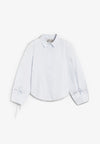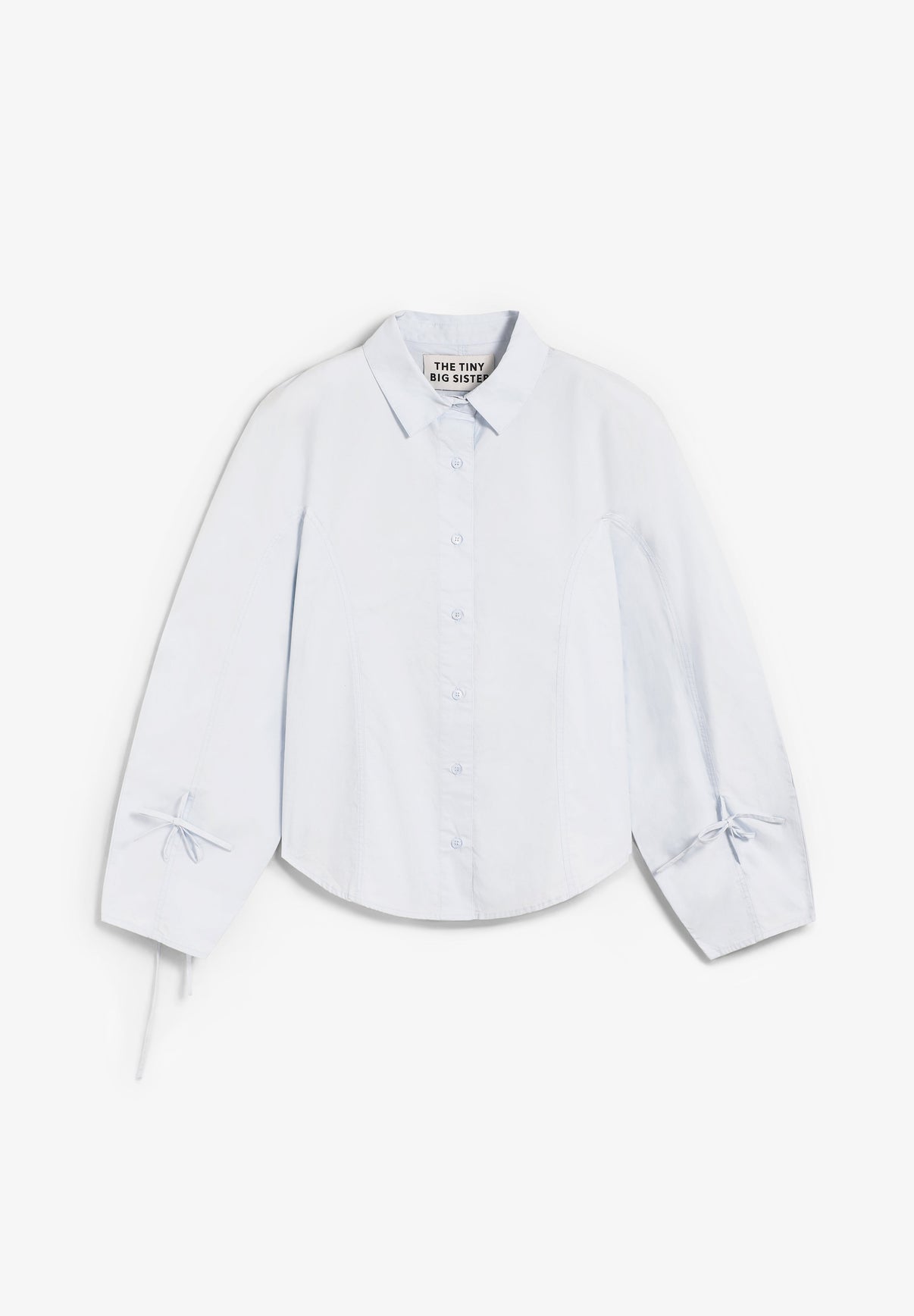 Blusa The Tiny Big Sister confeccionada en popelina de algodón con tacto papel. Presenta cortes estructurados en el cuerpo y mangas trabajadas con forma, acabadas con cordones ajustables.