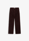 Pantalones The Tiny Big Sister confeccionados en pana gruesa en un tono burdeos intenso. Presenta cintura alta, perneras anchas y cierre de cremallera lateral.