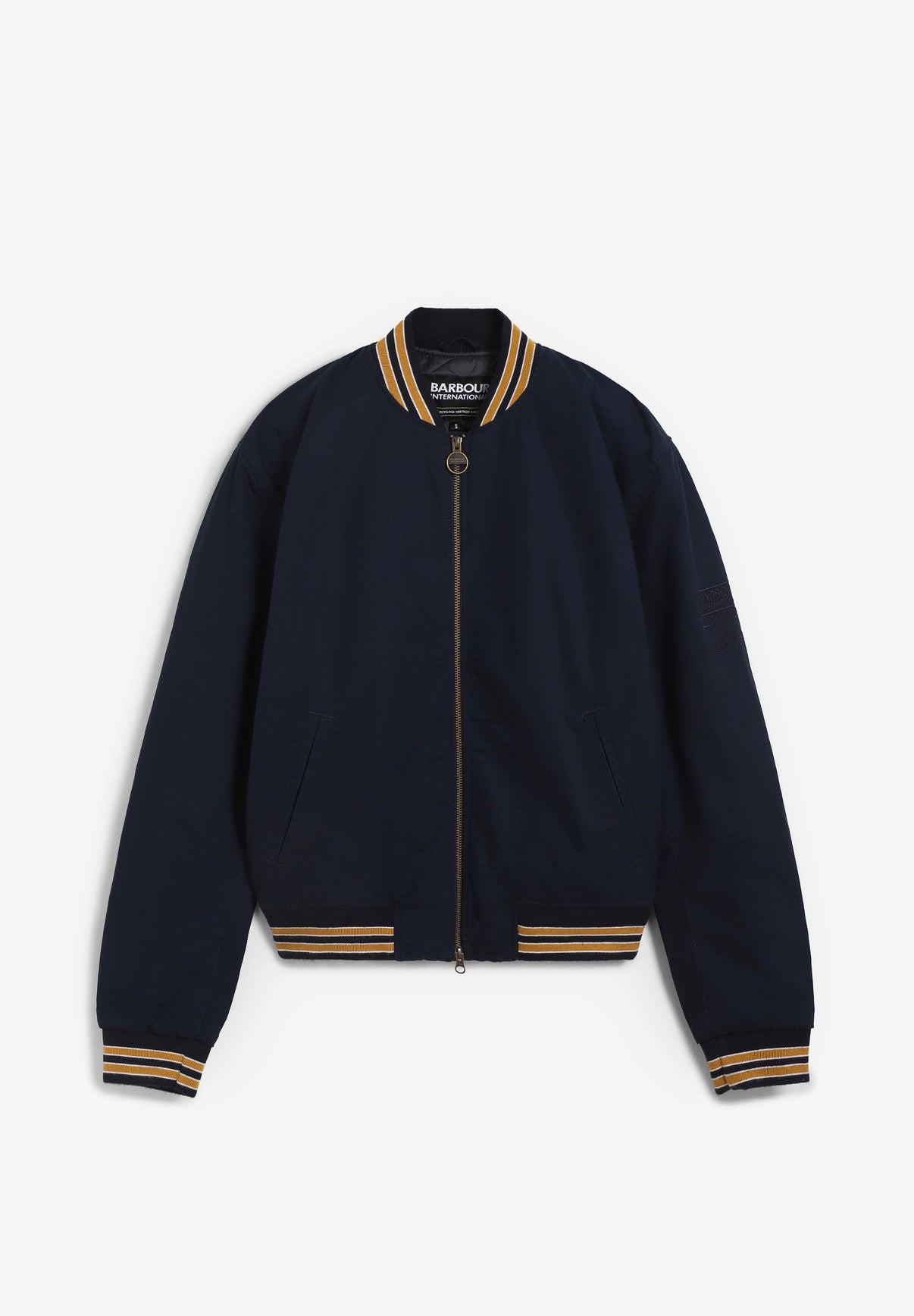 Chaqueta Barbour International confeccionada en mezcla de tejidos: 45% algodón, 38% poliéster, 17% poliamida. Diseñada con un acolchado informal y corte extragrande, cuenta con dos bolsillos con tecnología calientamanos, cuello de pana y cierre frontal con botones.