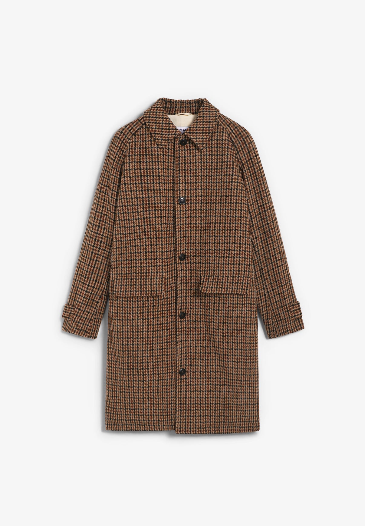 Abrigo Sebago con motivo pied de poule. Cuenta con manga raglán, cierre de botones en la parte central y manga larga.