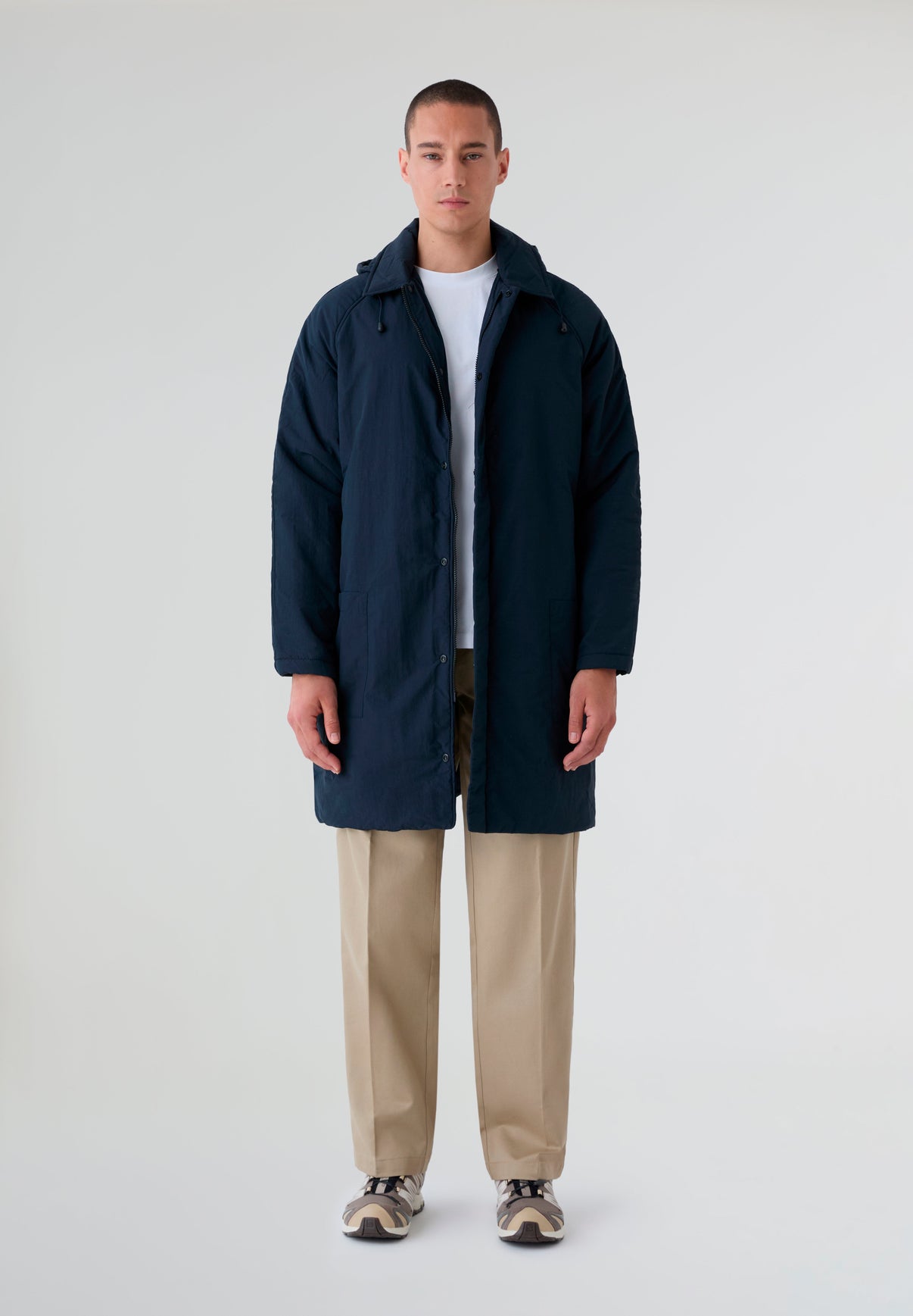 Abrigo Unfeigned confeccionado en 57% PA reciclado, 17% PA y 26% algodón. Presenta un diseño de líneas limpias, estilo relajado y detalles funcionales.