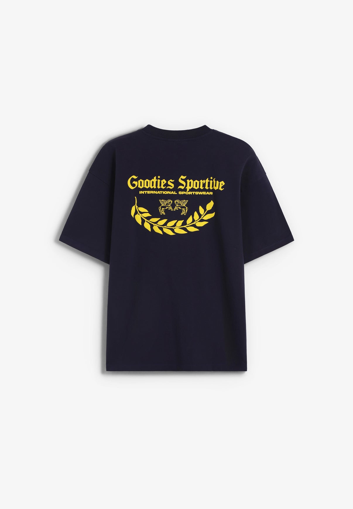 Camiseta Goodies Sportive confeccionada en 100% algodón. Cuenta con cuello redondo acanalado, manga corta y estampado en el pecho izquierdo y en el centro de la espalda.