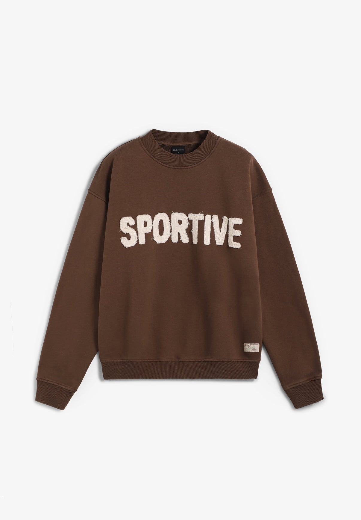 Sudadera Goodies Sportive confeccionada en 100% algodón. Cuenta con cuello redondo y aplique de tejido crudo con "Sportive" en el pecho.