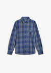 Camisa Kappy confeccionada en un tejido ligero y cálido que proporciona comodidad y abrigo en el día a día. Presenta un diseño de cuadros y colores vintage, detalle distintivo con la etiqueta de la marca en el bolsillo del pecho, silueta relajada, pliegues en ambos lados de la parte trasera y ha sido sometida a un proceso de prelavado para minimizar el encogimiento del tejido después del lavado.