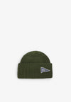 Gorro Deus Ex Machina confeccionado en lana y forma de reloj. Presenta una doblez doble, una construcción de corona de punto circular y un parche de fieltro de marca.