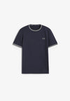 Camiseta Fred Perry confeccionada en puno de algodón ligero y corte recto. Cuenta con cuello redondo y borde de las mangas con ribete con dos franjas.