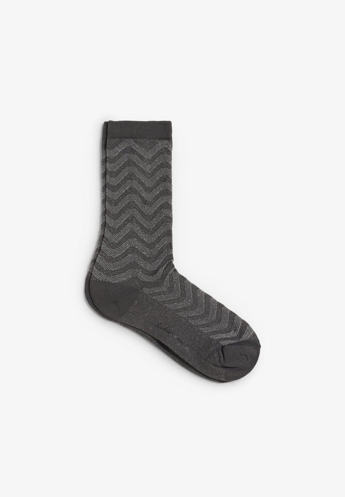 Calcetines Becksondergaard confeccionados en 73% poliamida, 10% poliéster, 10% fibra metálica y 1% elastano. Perfectas para realzar tus zapatillas o bailarinas con un sutil brillo, mientras que sus finas rayas aportan estilo.