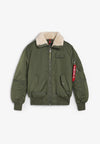 Chaqueta bomber Alpha Industries confeccionada en 100% nailon y forro 100% poliéster. Presenta un corte regular fit, un bolsillo "Utility Pocket" en el brazo izquierdo junto con una etiqueta RBF (Remove Before Flight), y un parche velcro con el logo Alpha. Cuenta con cuello teddy plegable, bolsillos exteriores con botón de presión y uno interior. Detalles de puños rib en las mangas y dobladillo para un ajuste seguro.