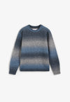 Jersey Samsøe Samsøe confeccionado en mezcla de poliéster reciclado, lana y alpaca. Presenta un corte corte regular con estampado degradado, cuello redondo, puños y bajo ribeteados en canalé, costuras y hombros totalmente confeccionados y diseño de rayas tonales degradadas con efecto jaspeado.