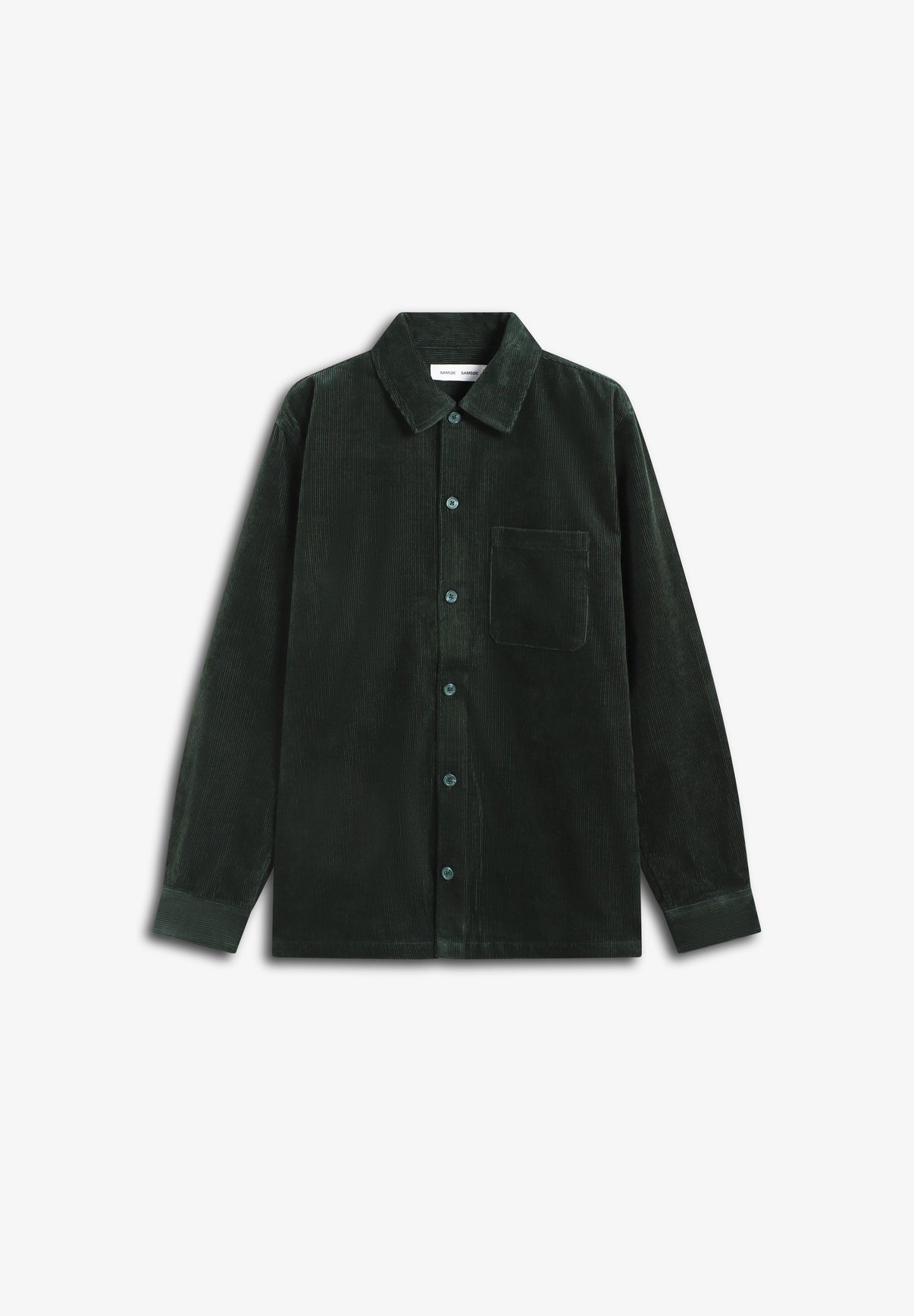 Camisa Samsøe Samsøe confeccionada en 100% algodón. Presenta un tejido de pana de mana larga y corte holgado, bolsillo de parche en la parte delantera y costura en el canesú del cuello.