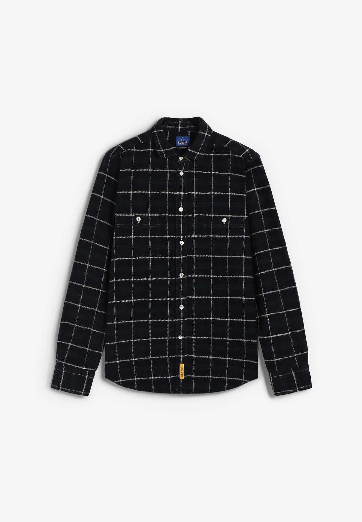 Camisa Bdbaggies confeccionada 100% en algodón. Presenta estampado a cuadros azul marino y dos bolsillos delanteros con solapa y cierre de botón.