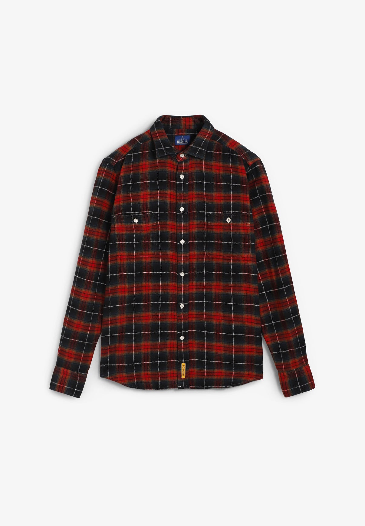 Camisa Bdbaggies confeccionada 100% en algodón. Presenta estampado a cuadros en tonos rojos y azul marino y dos bolsillos delanteros con solapa y cierre de botón.