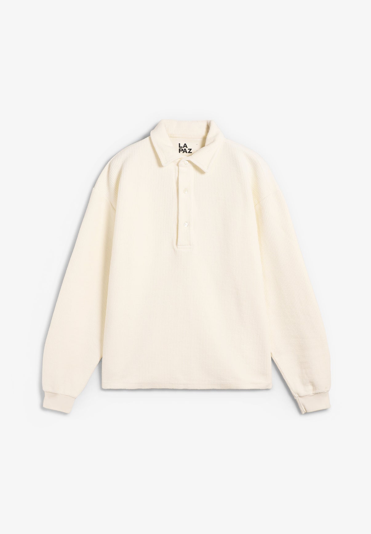 Polo de manga larga La Paz confeccionado en un tejido acanalado aterciopelado, suave al tacto y cálido. Presenta un ajuste regular y cuello camisero con botones.