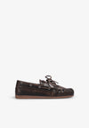 Mocasines Alohas confeccionados en cuero marrón cepillado. Presentan un acabado texturizado y una construcción inspirada en los mocasines. Cordones y ojales metálicos, cordón en el collar y plantilla acolchada.