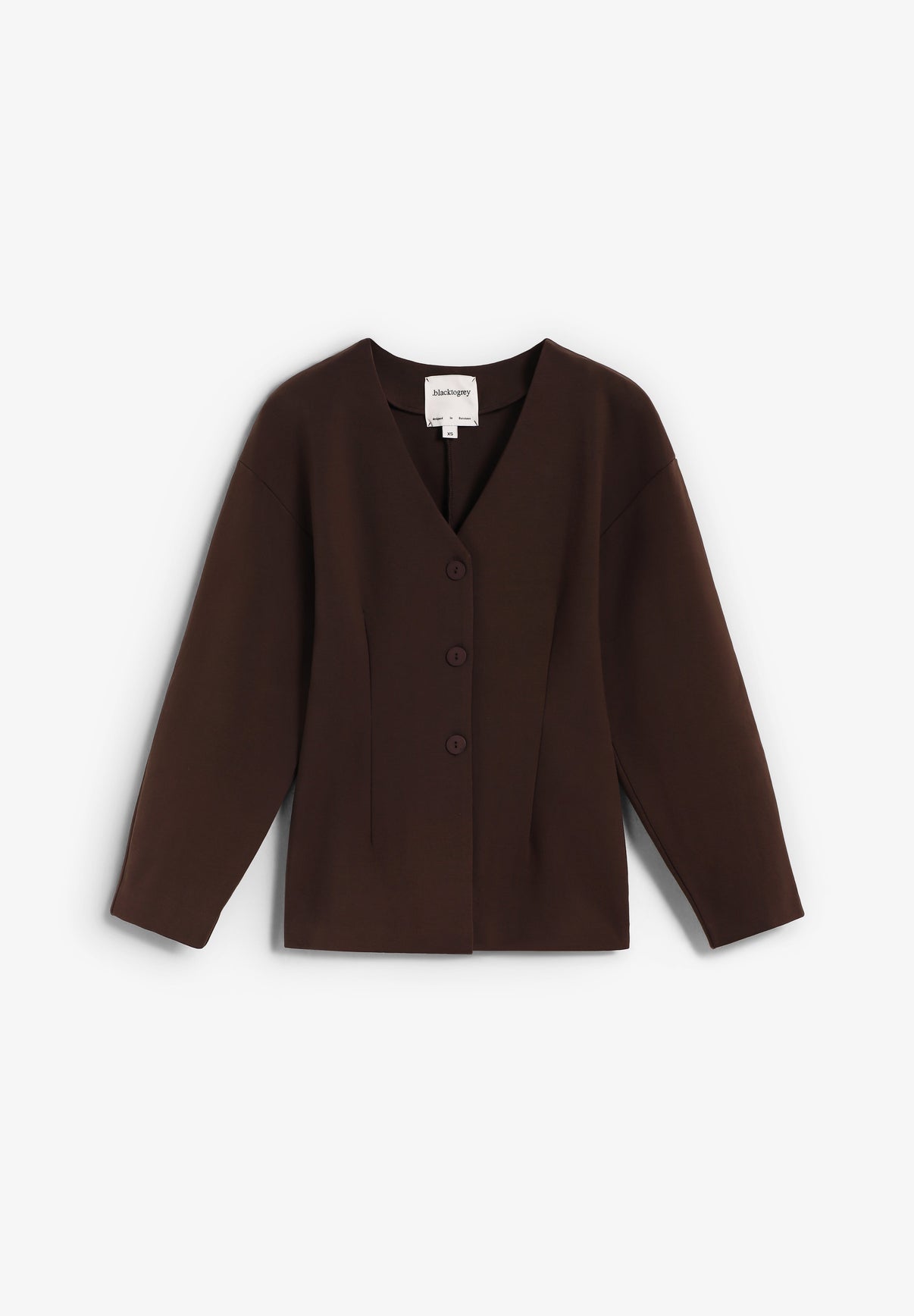 Blazer .Blacktogrey confeccionada en 91% algodón BCI y un 9% elastano. Se trata de una blazer de punto ajustado con pinzas delanteras y traseras y un cierre de botones sencillo en la parte delantera.