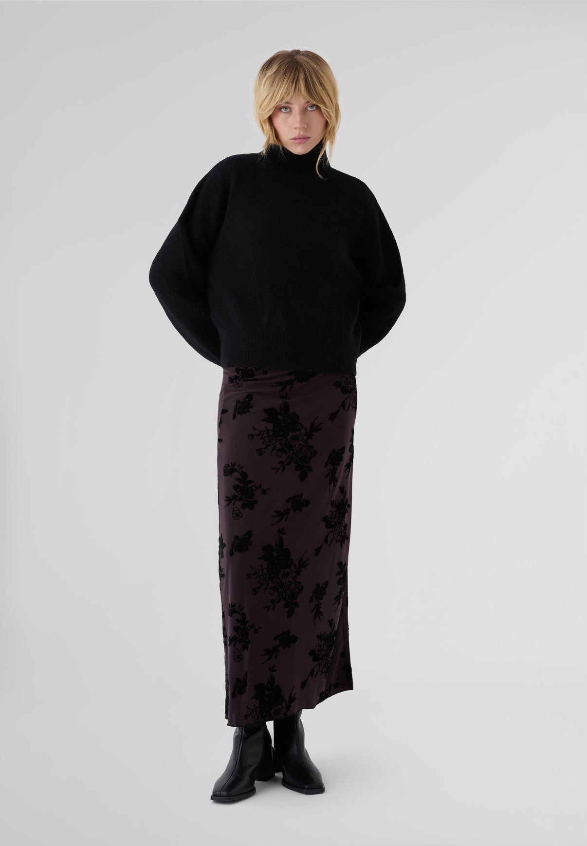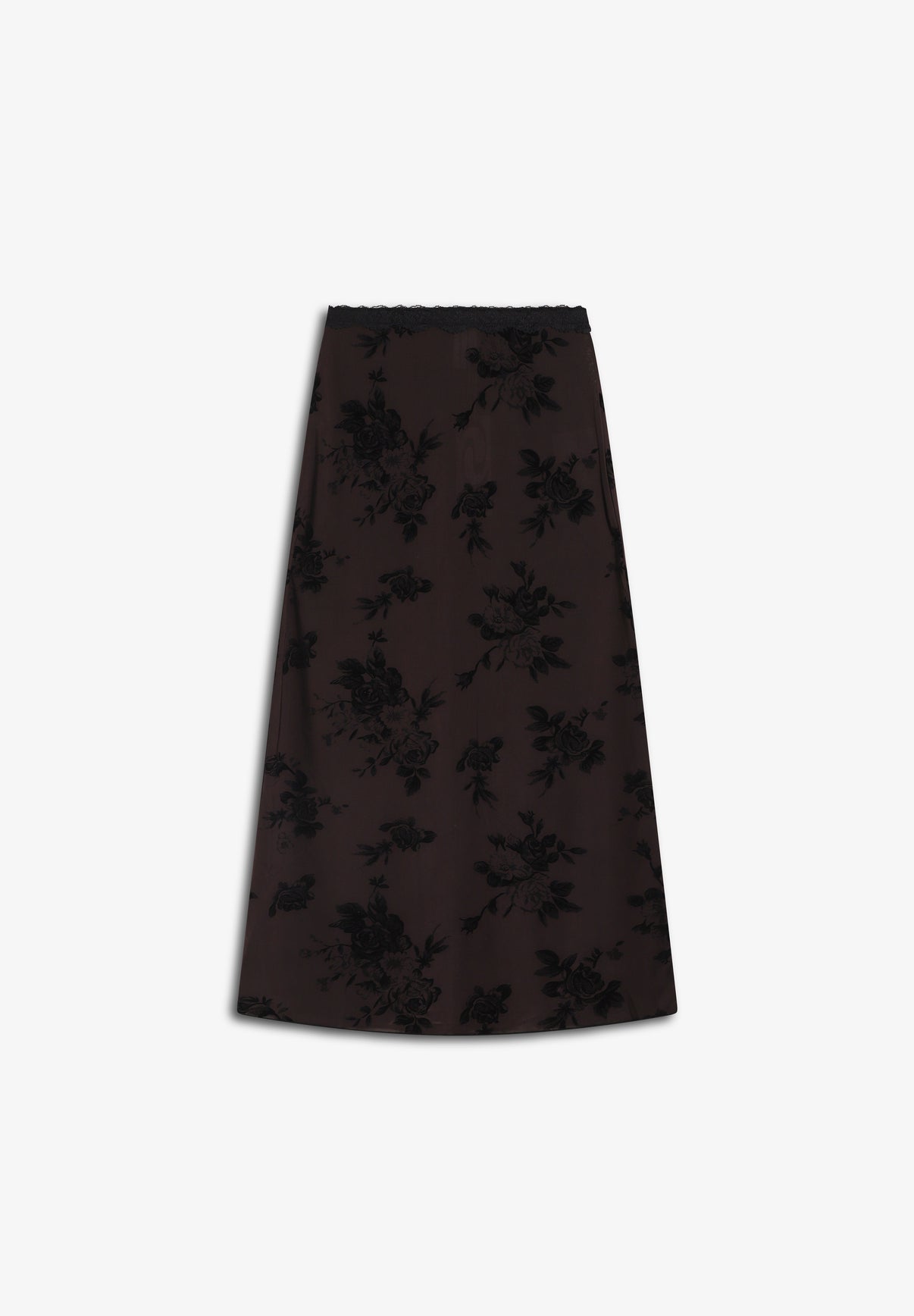 Falda larga Résumé confeccionada en 95% algodón y 5% elastano. Presenta un estampado integral y banda decorativa en la cintura.