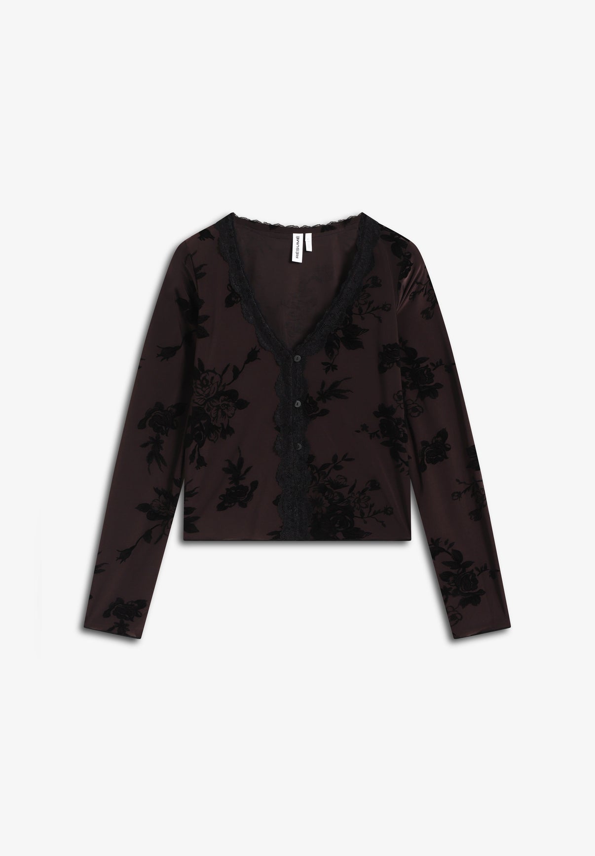 Blusa Résumé confeccionada en 95% algodón y 5% elastano. Presenta un corte ajustado, cuello de pico, estampado integral y banda decorativa.