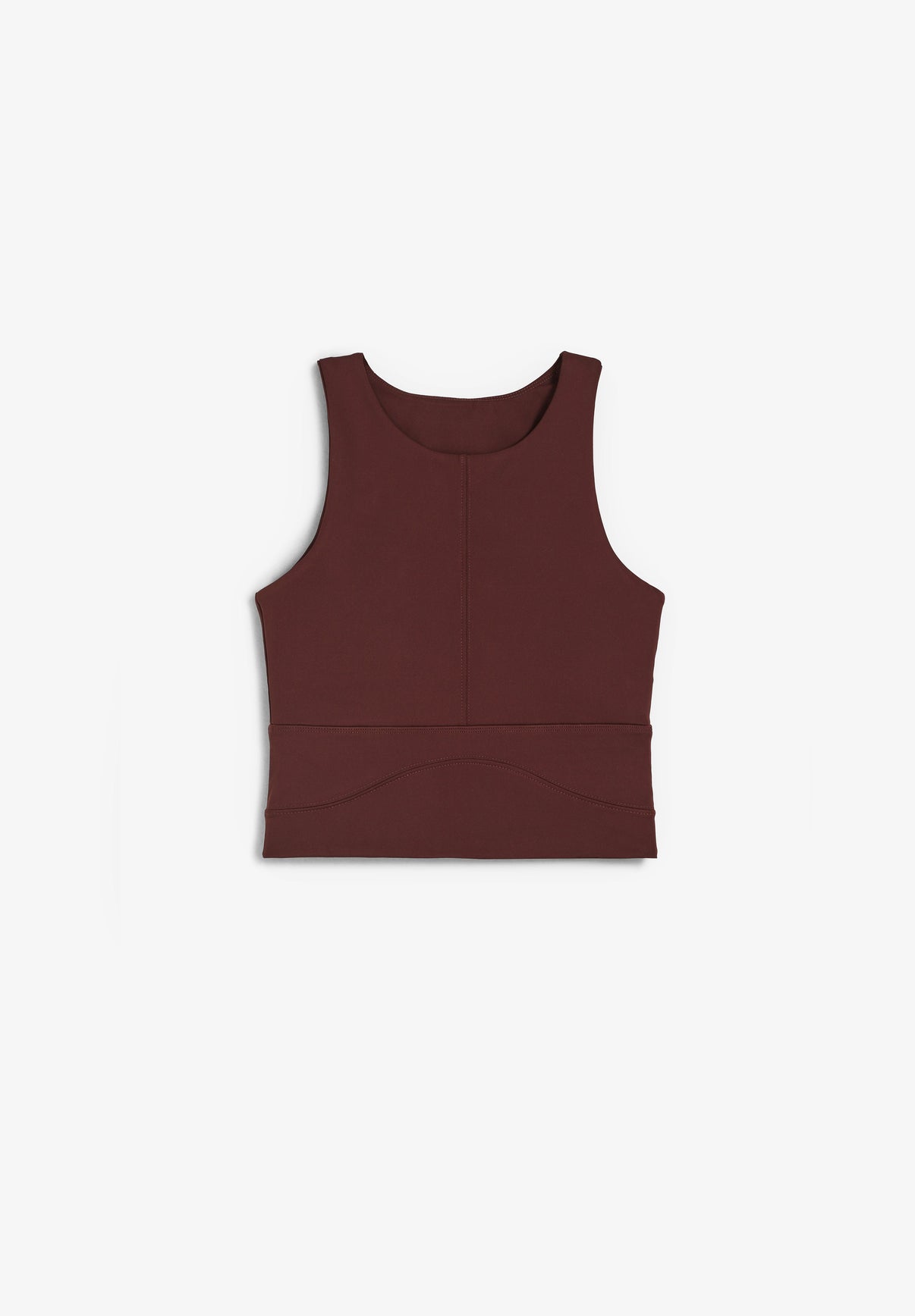 Top Born Living Yoga confeccionado en 80% poliéster y 20% elastano. Presenta una sujeción media alta, un diseño elegante de banda ancha muy favorecedora y tejido "Skin_Move", ligero y resistente. Incluye copas extraíbles.