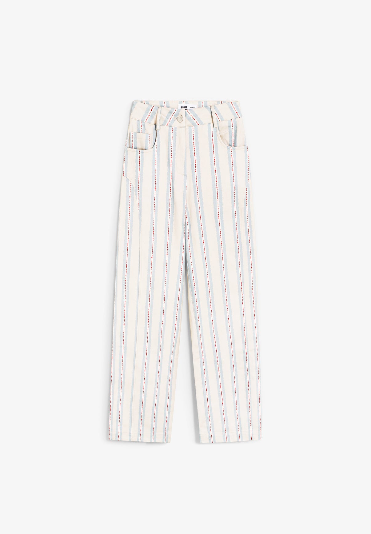 Pantalón Seasons by Macabla confeccionados en 98% algodón y 2% elastano. Presenta un corte de pierna recta con panel frontal curvo, cierre con cremallera y botón metálico.