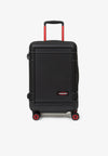 Maleta rígida Eastpak confeccionada en 100% policarbonato. Presenta un tamaño de cabina y dos compartimentos con cierre de cremallera. El diseño es ultraligero y se completa con varios detalles de color rojo, un asa con la inscripción "Built to Resist" y unas ruedas japonesas con sistema giratorio de 360 grados.
