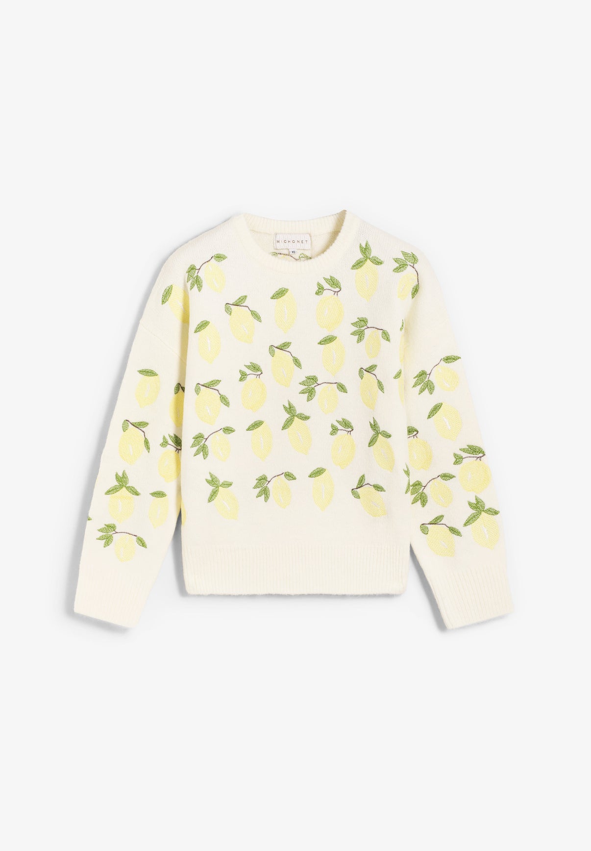 Jersey Michonet confeccionado en 78% acrílico, 10% nailon, 10% lana y 2% elastano. Presenta un corte relajado, cuello redondo y bordado de limones en amarillo y verde.
