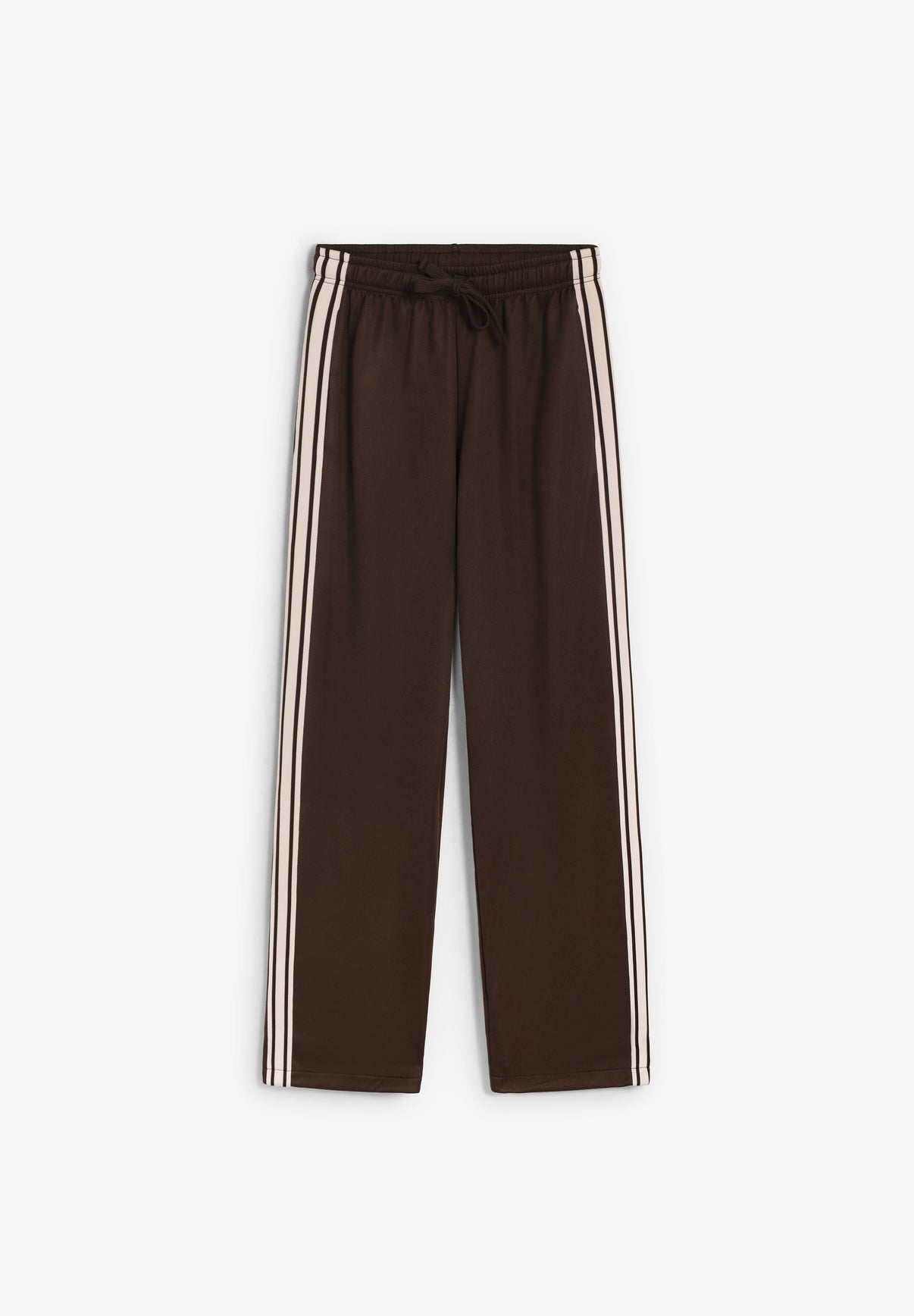 Pantalones Bash confeccionados en 55% poliéster y 45% algodón. Presenta un diseño vintage con un juego de bandas en los laterales, cremallera en contraste, cintura elástica y detalle de cordón en el dobladillo para un efecto abullonado.