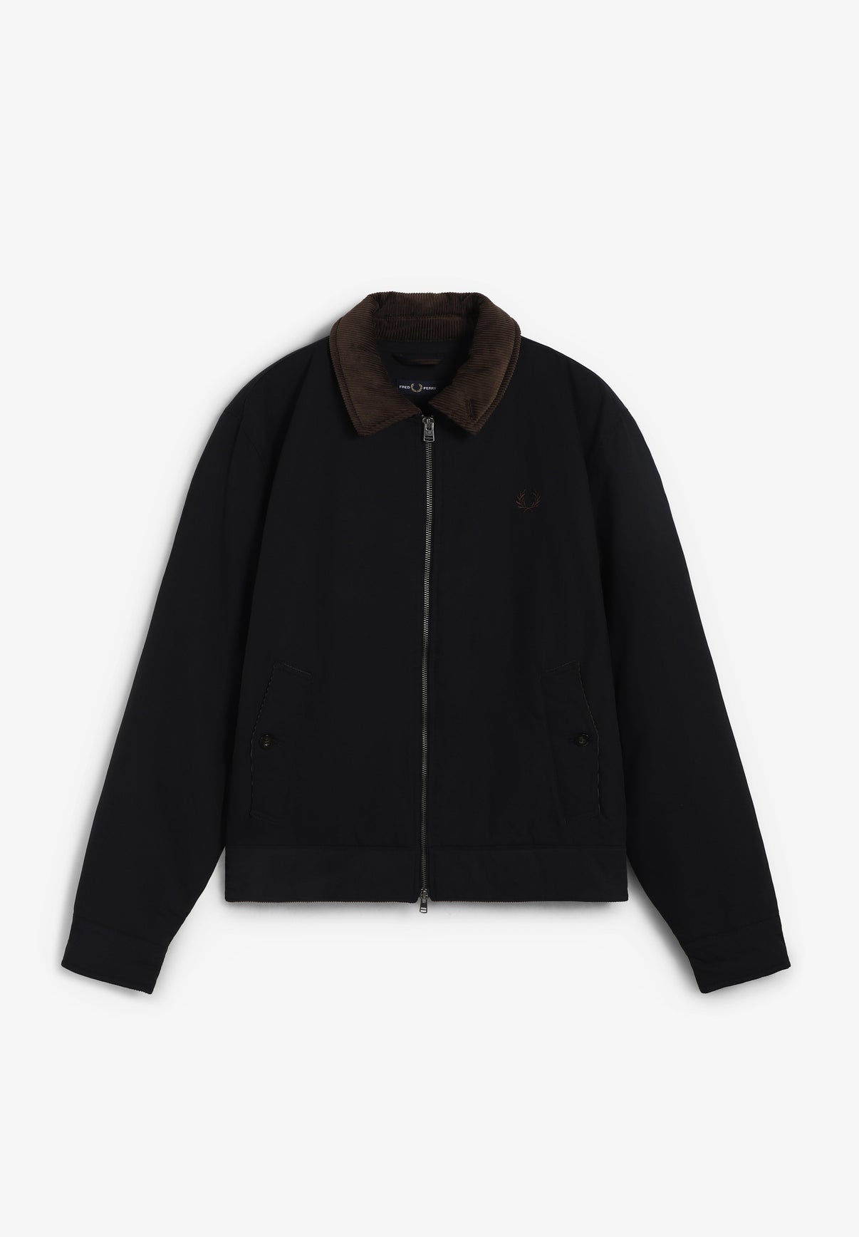 Chaqueta Fred Perry confeccionada en 78% algodón y 22% poliéster reciclado. Presenta cuello de pana, corte recto, cremallera metálica con tirador con el logotipo de la marca, puños con botones de imitación de asta y logotipo bordado en el lado izquierdo del pecho.
