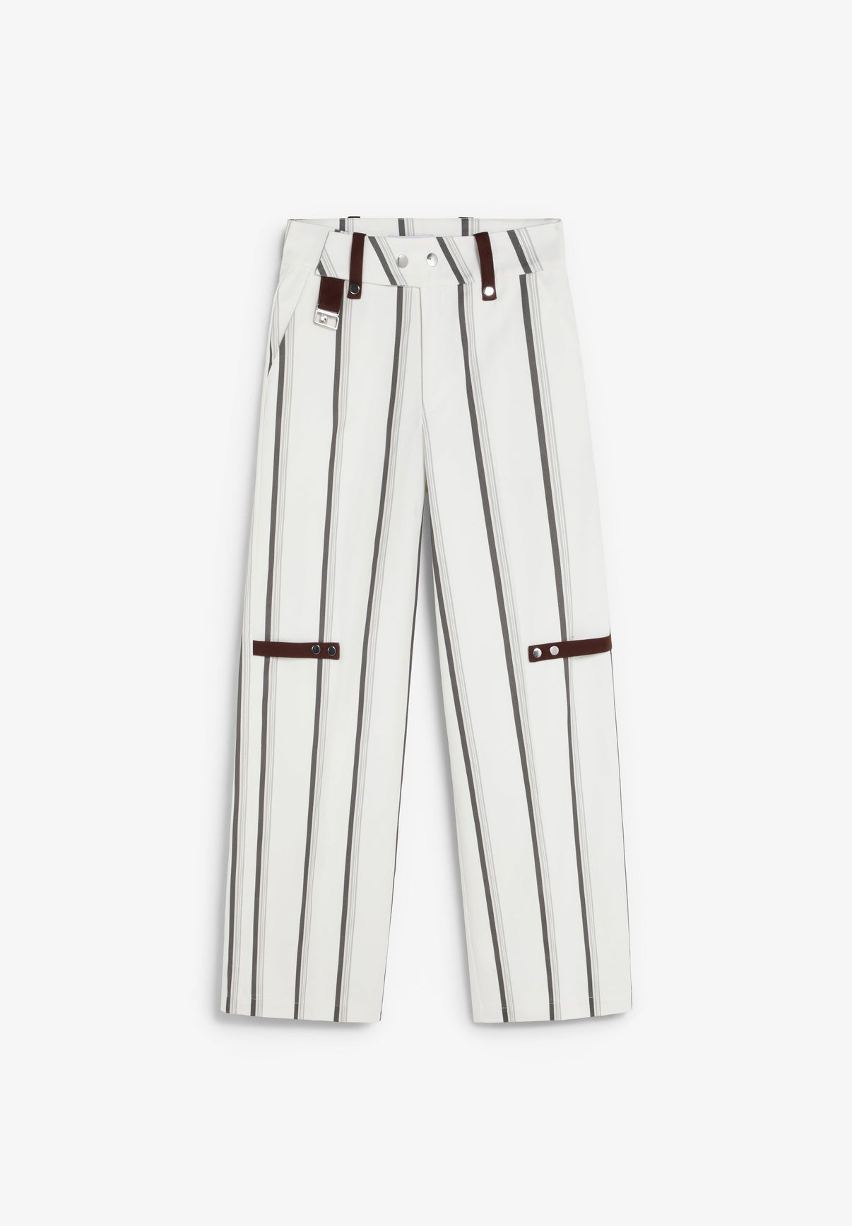 Pantalón Laagam de cintura alta con una silueta de pierna ancha y bolsillos laterales. Presenta trabillas de cinturón en contraste y tira con imagotipo metálico. Detalles de cinta lateral con broches, costuras traseras curvadas y bragueta delantera con cierre de cremallera y broche.